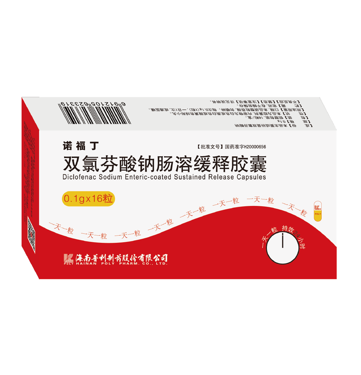 双氯芬酸钠肠溶缓释胶囊(诺福丁)是采用国家发明专利微丸技术,生产的创新剂型;“其研制及生产转化”项目荣获海南省科学技术二等奖。诺福丁药物设计采用不超过2毫米的4重微丸,服用后微丸可迅速通过胃幽门、释放药物,从而达到“15分钟快速起效止痛,24小时长效镇痛”的效果。诺福丁是医保目录中剂型单列的独家“肠溶缓释胶囊”,上市临床使用20余年,广泛地应用于风湿性关节炎、急慢性关节炎、急性痛风、痛经等症状,疗效与安全性深受医生和患者的青睐,曾荣列“2021年中国家庭常备药上榜品牌”。