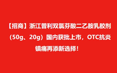 【招商】浙江普利双氯芬酸二乙胺乳胶剂(50g、20g)OTC获批上市,抗炎镇痛赛道诚邀加盟!