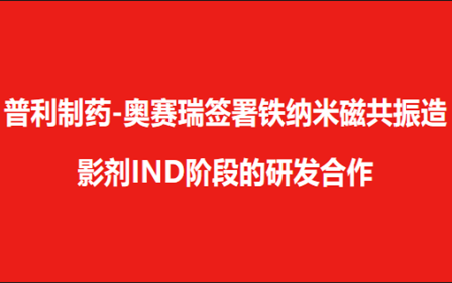 普利制药-奥赛瑞签署铁纳米磁共振造影剂IND阶段的研发合作