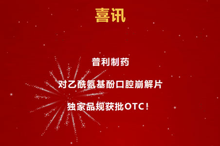 普利制药闪释®对乙酰氨基酚口腔崩解片 (0.125 g) 获批OTC