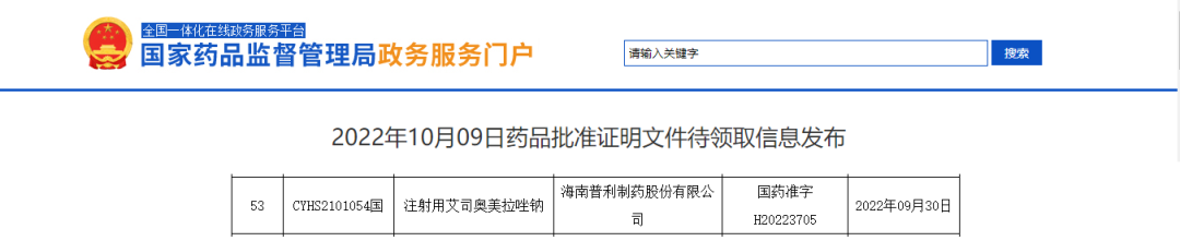 【喜报】普利制药生产的注射用艾司奥美拉唑钠继美国、荷兰获批后,在中国获批上市!